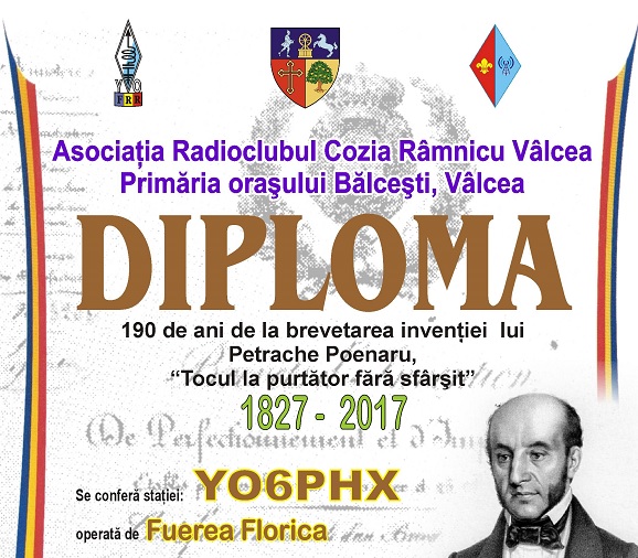 Începând cu data de 1 mai până la sfârşitul lunii radioamatorii Asociaţiei ”Radioclubul Cozia” Râmnicu Vâlcea desfăşoară un eveniment radioamatoristic intitulat „Diploma 190 de ani de la brevetarea invenţiei lui Petrache Poenaru, tocul la purtător, fără sfârşit” lansând în eter indicativul special YP7TP acordat de Autoritatea Naţională de Reglementare în Comunicaţii (ANCOM).