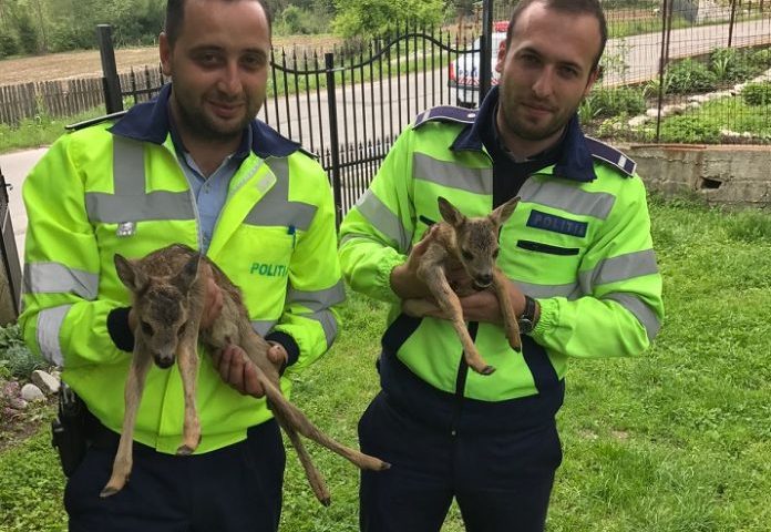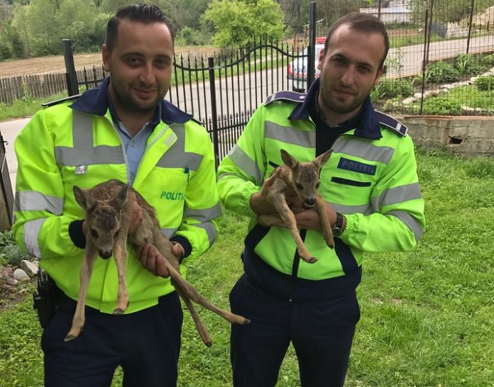 Agentul principal de poliţie Păuceanu Cătălin şi agentul de poliţie Roşianu Cosmin au protejat puii de căprioară de câinii care le ameninţau viaţa şi au cerut sprijin de specialitate reprezentanţilor A.J.V.P.S. Vâlcea.