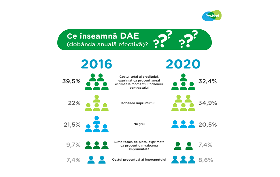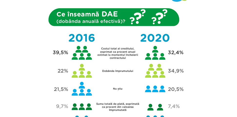 De altfel, potrivit aceluiași studiu, 42% dintre români spun că DAE se numără printre cele mai importante trei aspecte de care țin cont când iau un împrumut. În aceeași măsură, însă, 21% dintre respondenți au declarat că nu știu ce este DAE și alți 44% au o înțelegere greșită a acestui indicator. Explicațiile despre de ce este DAE mai mare pentru împrumuturile mici pe termen scurt, într-un scurt film, unul dintre cele 5 din cadrul proiectului, aici.