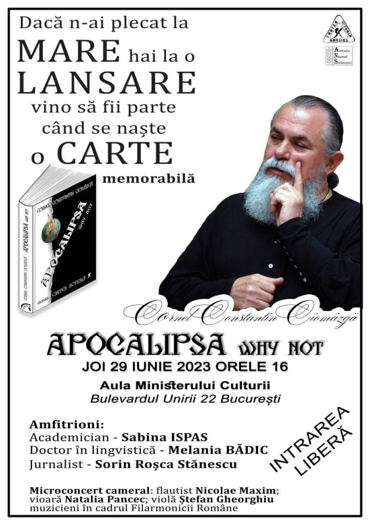 Lansarea acestei noi cărți va avea loc în data de 29 iunie 2023, orele 16.00 în Aula Ministerului Culturii, Bulevardul Unirii 22.