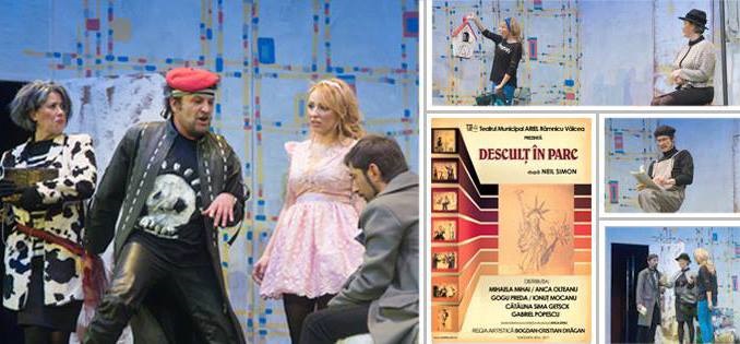 Actorii Teatrului Municipal „Ariel” joacă spectacolul „Desculț în parc” în București, la invitația Teatrului „Stela Popescu”