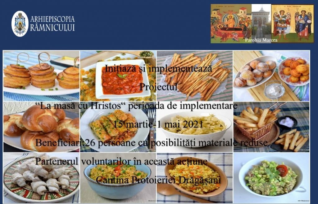 Inimoșii voluntari ai Parohiei Marcea, călăuziți fiind de către Maica Domnului și Sfinții Arhangheli Mihail și Gavriil, având Arhierească binecuvântare a Înaltpreasfințitului Părinte Varsanufie, chiriarhul Râmnicului, fiind supravegheați de către Preacucernicul Părinte Gheorghe Anca, au inițiat și derulat frumosul proiect social filantropic numit generic „La masă cu Hristos, care se adresează unui grup țintă format din 26 de persoane cu posibilități materiale reduse. Proiectul constă în oferirea unei mese calde.