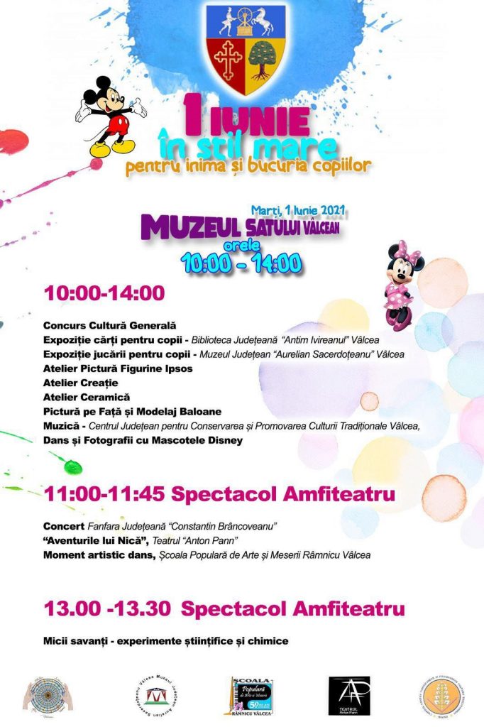Marți, 1 iunie 2021, între orele 10.00-14.00, Consiliul Județean Vâlcea, alături de instituțiile de cultură aflate în coordonare – Muzeul Județean “Aurelian Sacerdoțeanu”, Biblioteca Județeană “Antim Ivireanul”, Școala Populară de Arte și Meserii Râmnicu Vâlcea, Teatrul “Anton Pann”, Centrul Județean pentru Conservarea și Promovarea Culturii Tradiționale Vâlcea și Fanfara Județeană “Constantin Brâncoveanu” – vă invită, la Muzeul Satului Vâlcean, pentru a sărbători împreună, într-un cadru de poveste, ZIUA COPILULUI.