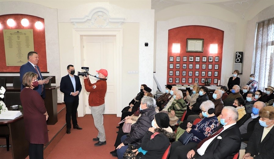 În preajma Sărbătorii Naşterii Domnului, primarul Mircia Gutău a premiat 56 de cupluri de râmniceni la aniversarea a 50 de ani de căsnicie