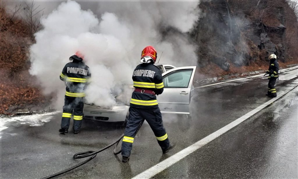 Incendiu la Gura Lotrului – motorul unui autoturism a luat foc