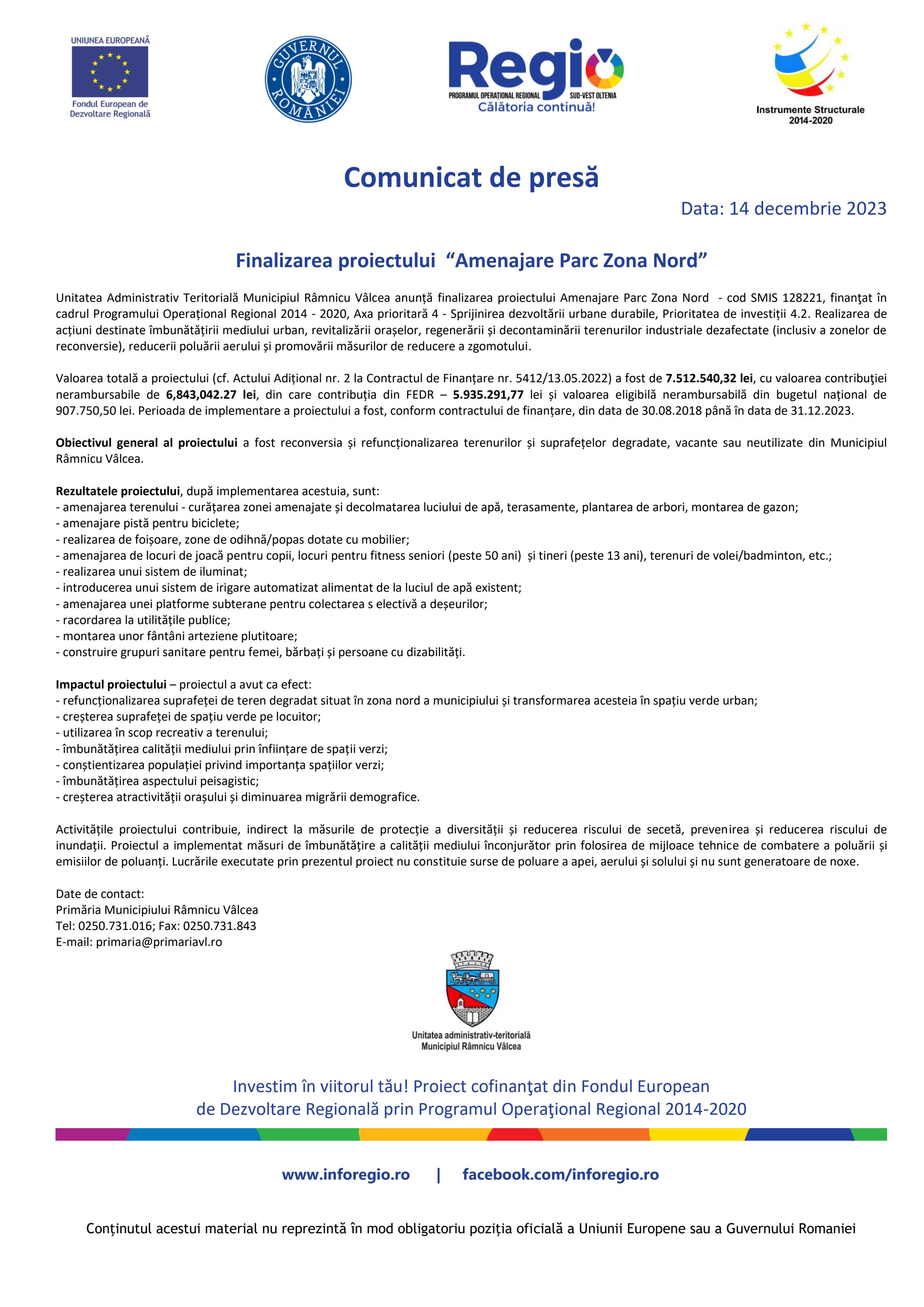 Finalizarea proiectului “Amenajare Parc Zona Nord”